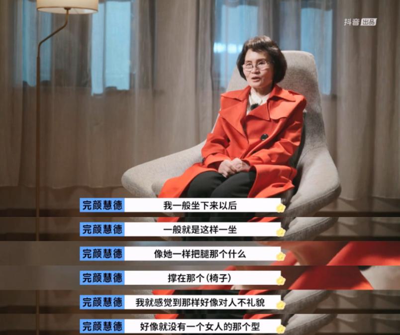 像是余秀华坐姿不拘小节,在完颜慧德眼中就「没有一个女人的型」。