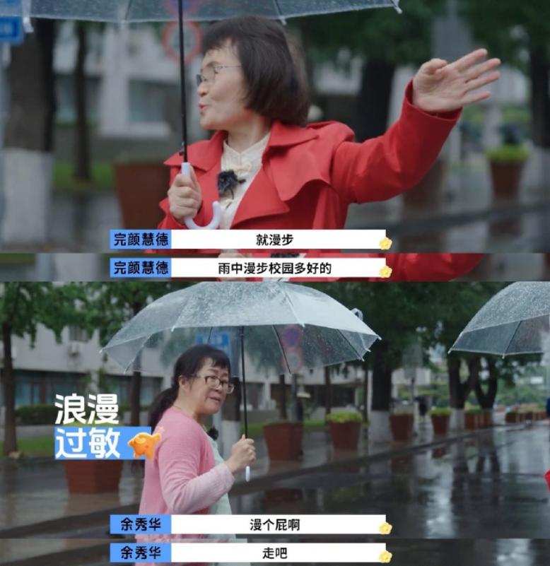 甚至随着友谊的加深,余秀华还主动帮这位因太老派认真而被网友玩梗伤害到的敌蜜解开心结。她频繁打趣口音梗,让完颜意识到很多话并没有想象中那么多的恶意。