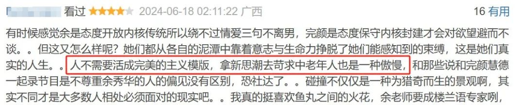 其实,并不是说节目有多好,余秀华就曾挑明,引发争议的婚姻问题是节目组设置。