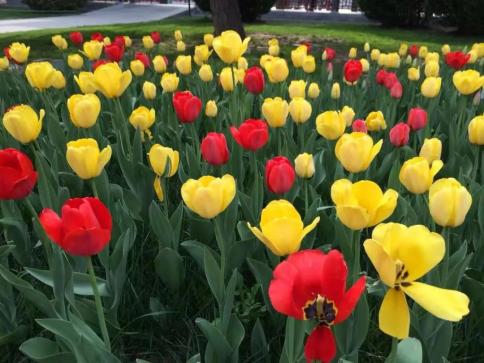 郁金香中含有凝集素和郁金香碱,接触其汁液可能引起过敏性皮炎,误食则容易恶心、呕吐、唾液分泌过多,严重时会出现心悸、发汗和呼吸困难等中毒症状。但只要不摘取、不食用,郁金香的毒素就不会对人体造成伤害,可以放心赏花。