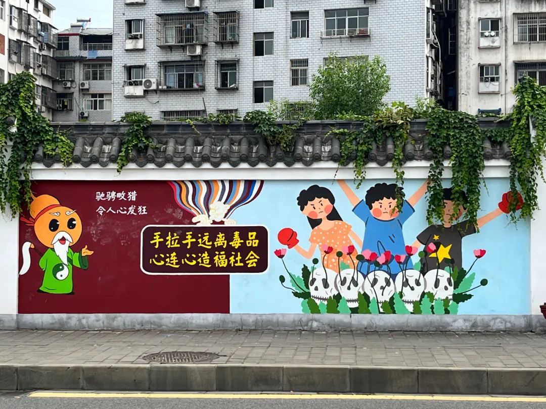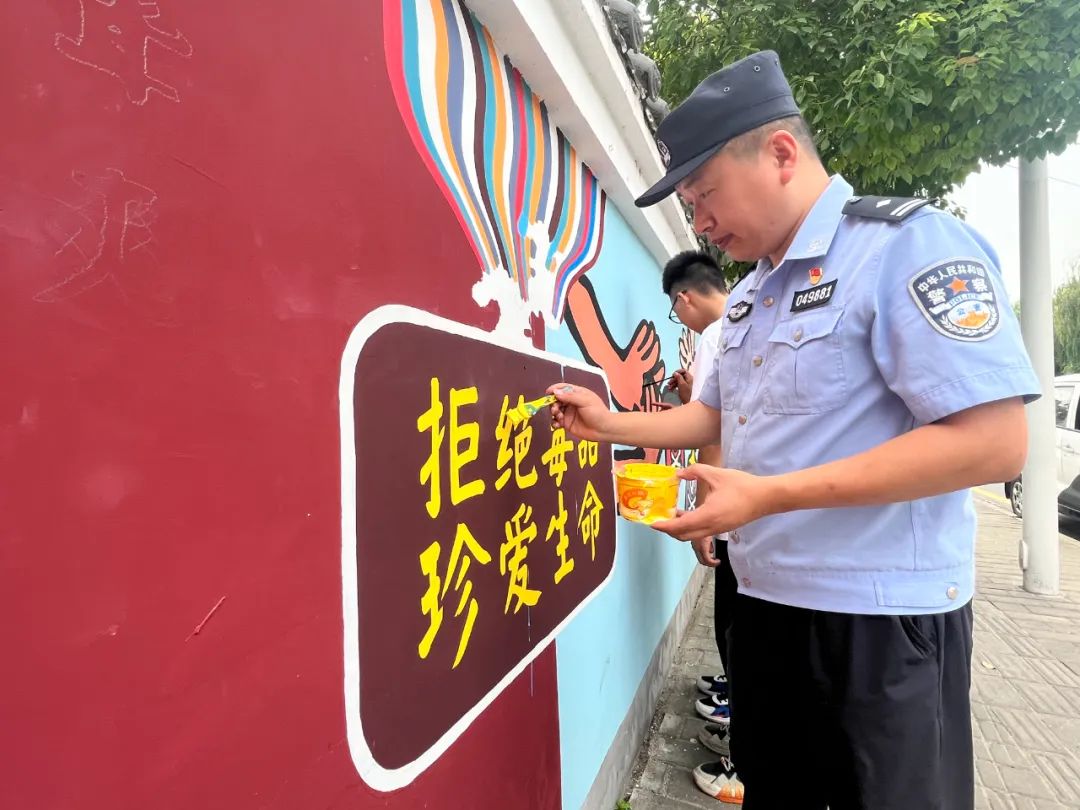 据了解,此次墙绘活动地点位于剑河二路沿线,墙体长约 6.5米、宽约 1.5米,共有17块墙面,墙绘内容紧紧围绕禁毒、反诈、防溺水等主题,采取手绘形式等方式进行宣传,有效提高辖区群众安全防范意识。