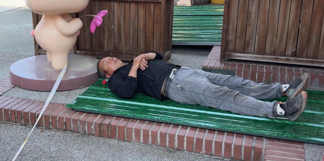 无论是闲散路人还是街头画家,都有一种打工人梦寐以求的松弛感。水瓶做枕铁皮为床的大叔,实力诠释什么叫做“躺平”。小孩哥开着mini版Cybertruck全场乱窜,丝毫不在意路人的眼光与止不住的汗。