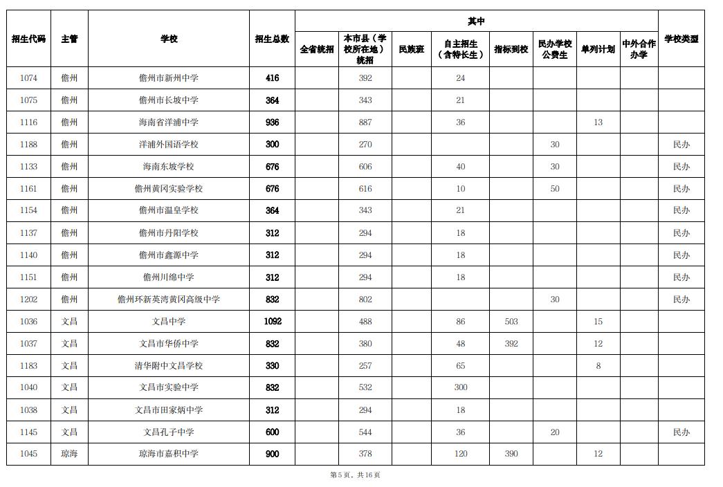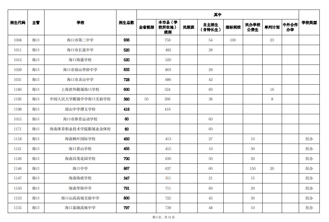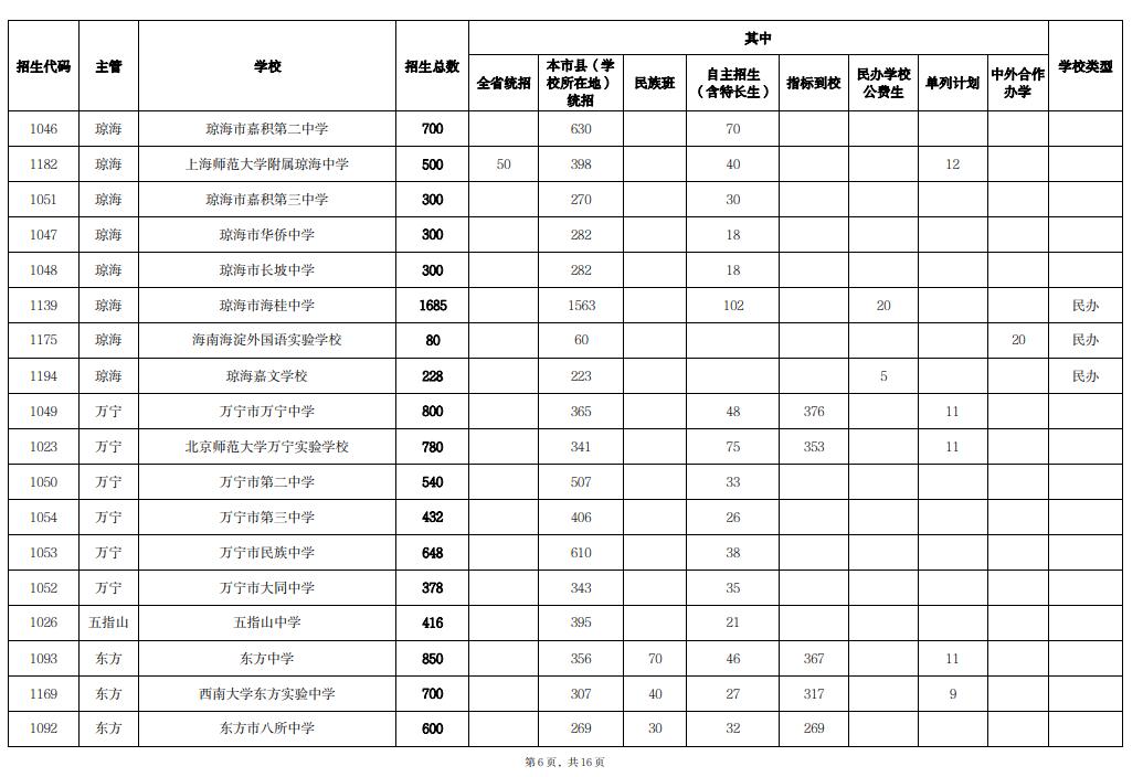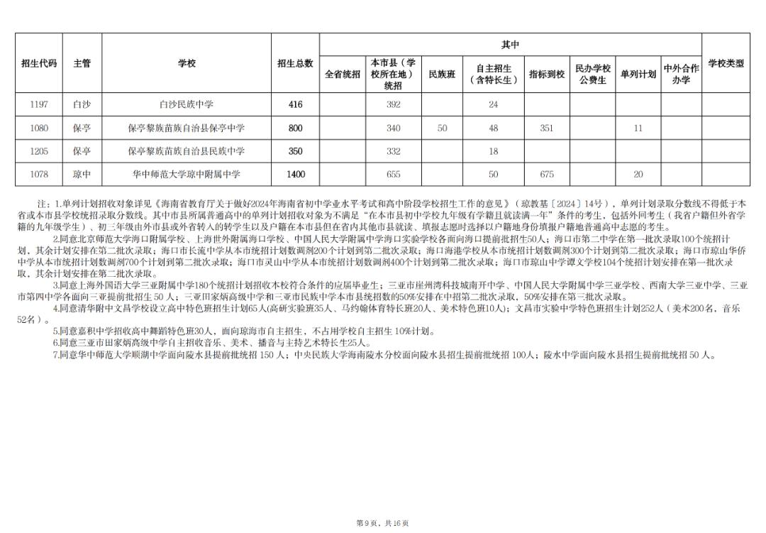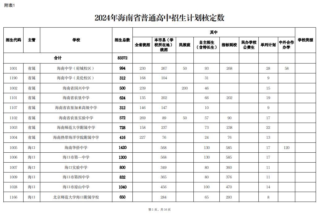 核定2024年海南省普通高中招生