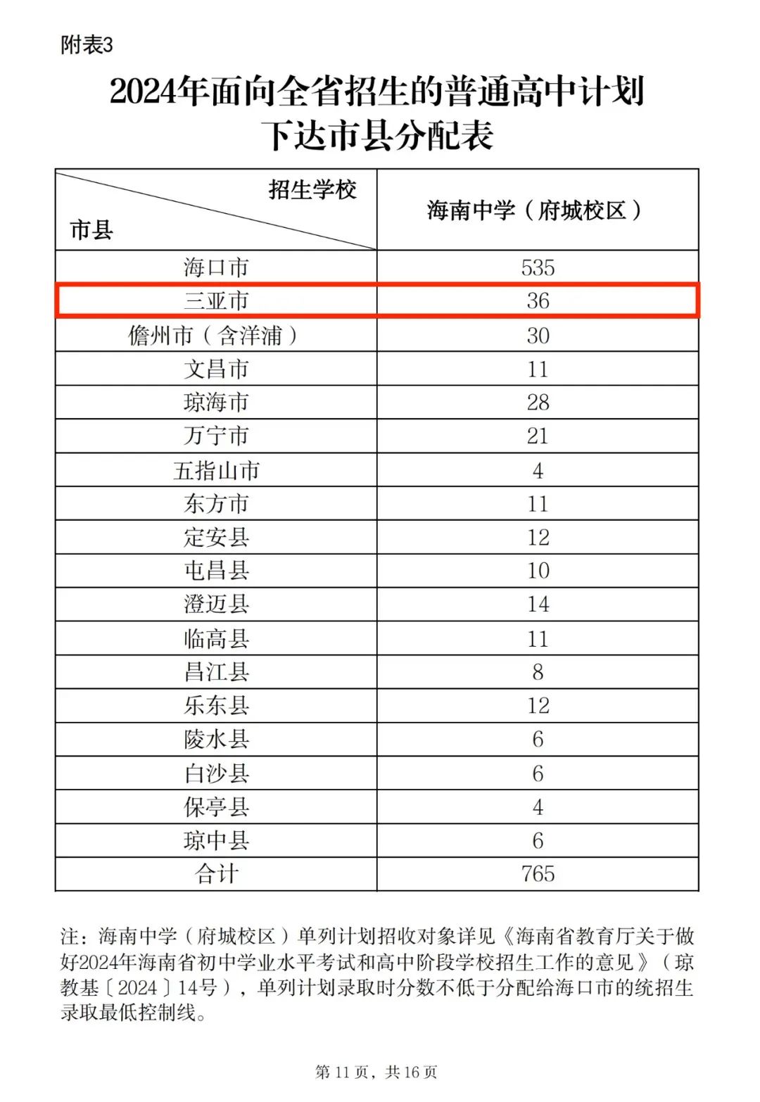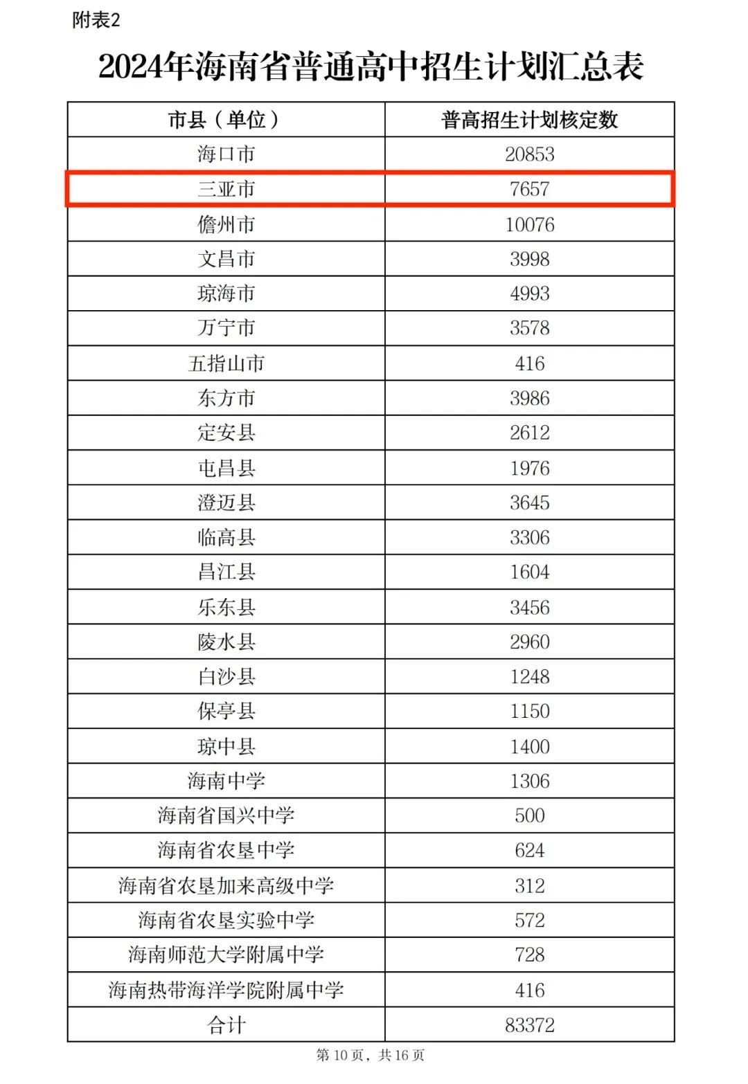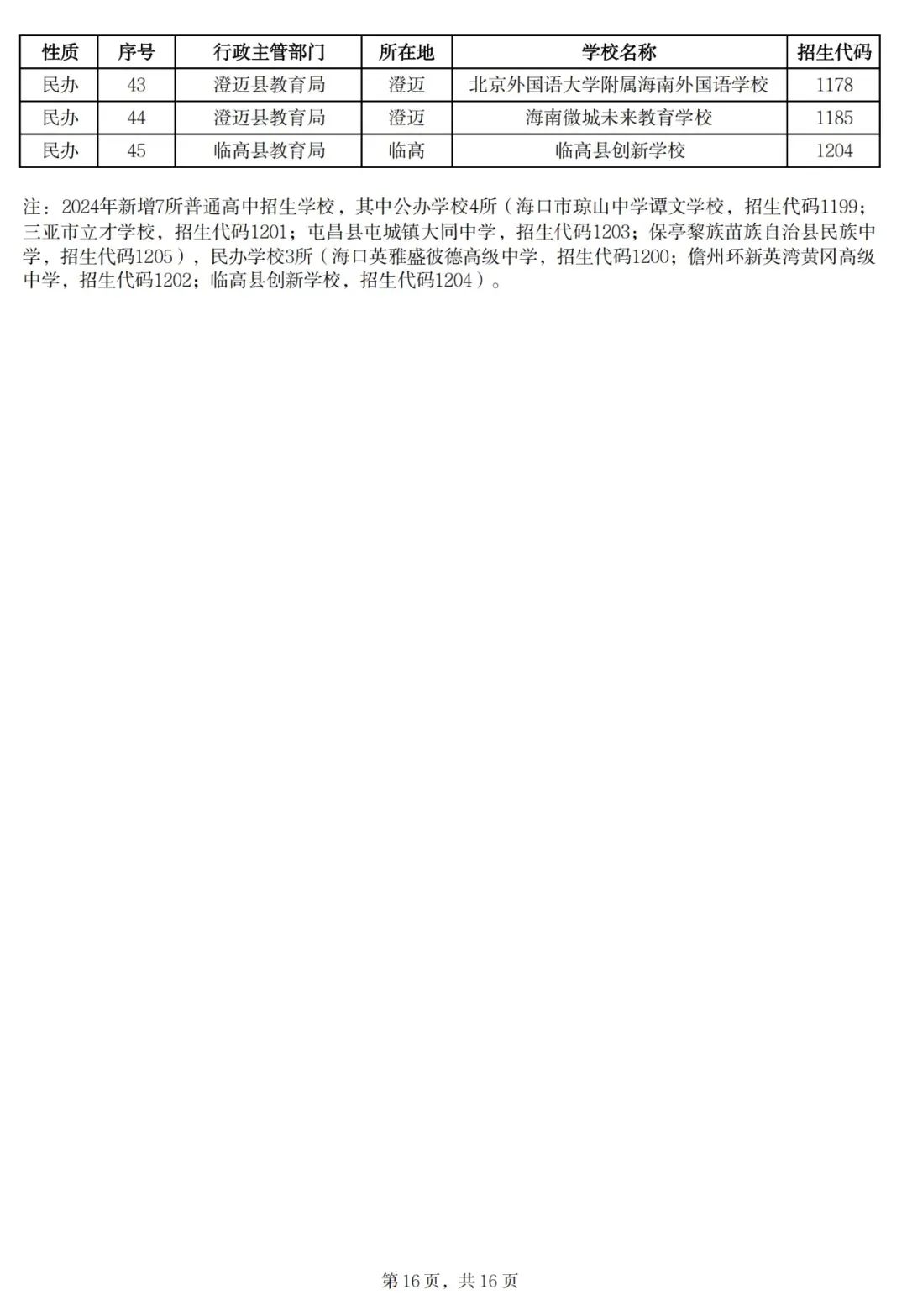 核定2024年海南省普通高中招生