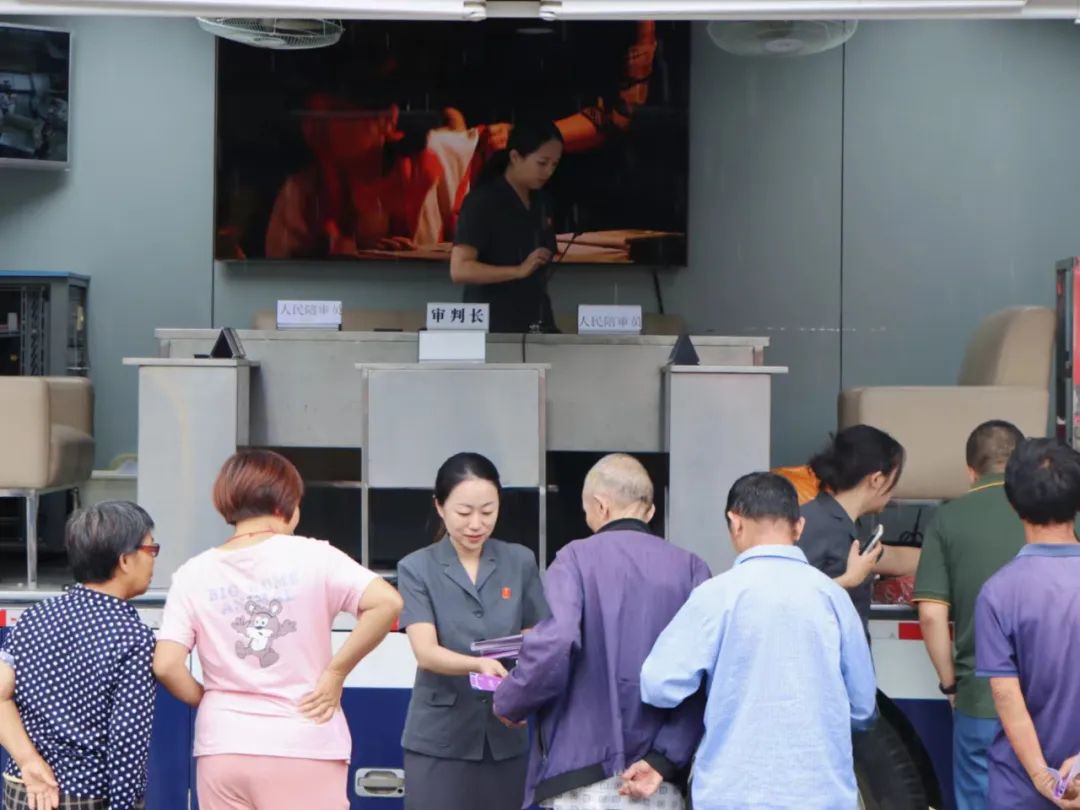 禁毒普法课结束后,法官们走上街头,利用巡回办案车在阳和集市滚动播放禁毒宣传片,悬挂禁毒宣传标语,发放禁毒知识手册,现场提供法律咨询等形式,以生动的画面和真实的案例,向来往群众宣讲禁毒知识。