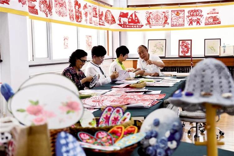 居民在长城花园社区才艺堂创作剪纸真情服务 邻里互助共渡难关