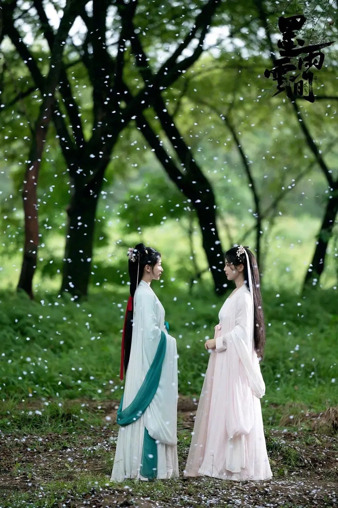 《墨雨云间》剧照 图源吴谨言微博这部剧的播出效果和观众的二创都超出了我的想象。萧蘅和薛芳菲练习射箭、雨中的极限拉扯、萧蘅嘴里叼玉的战损形象,是我们一开始就没有设想过的名场面,但是观众就对这些设定很感兴趣。