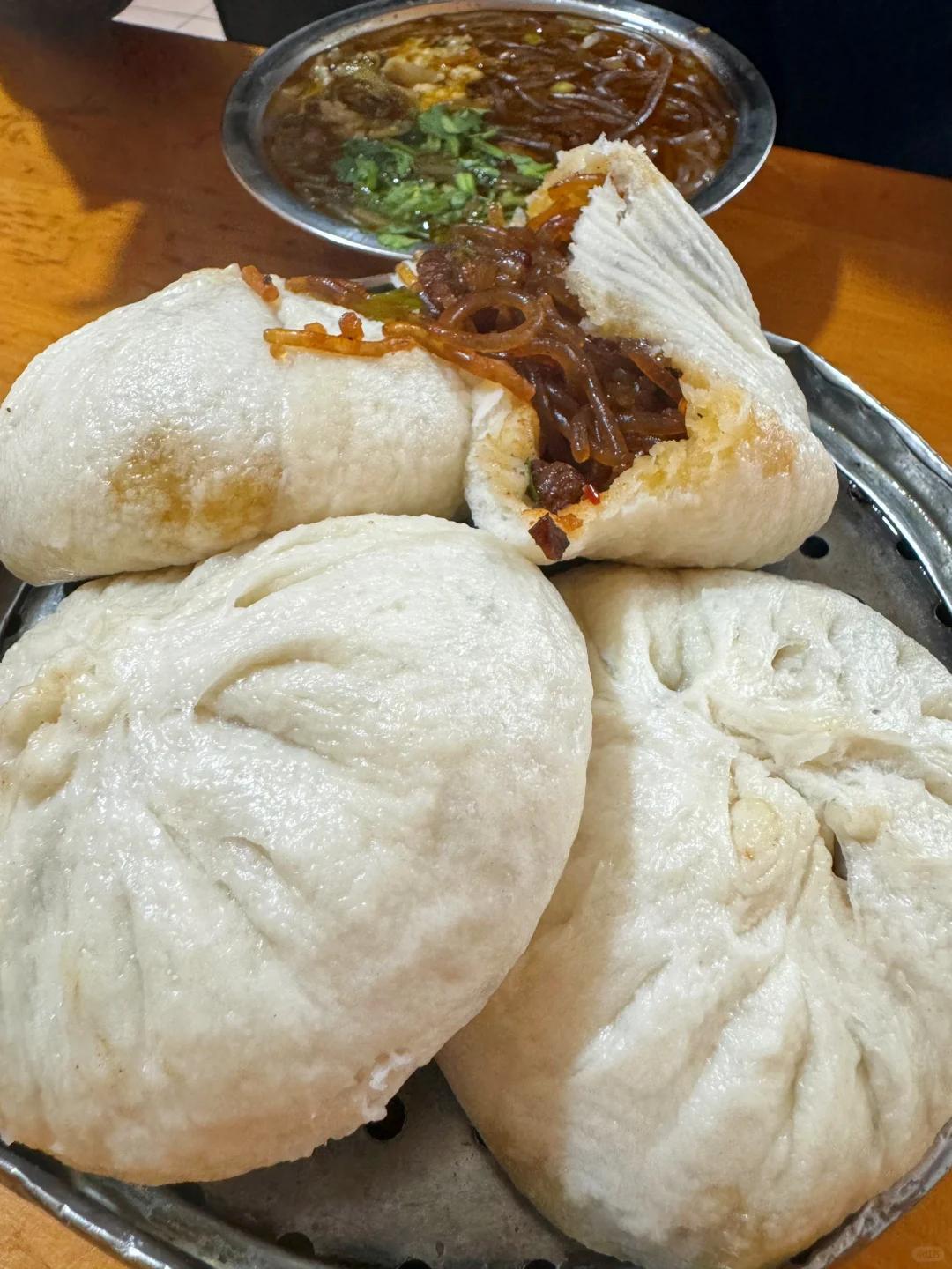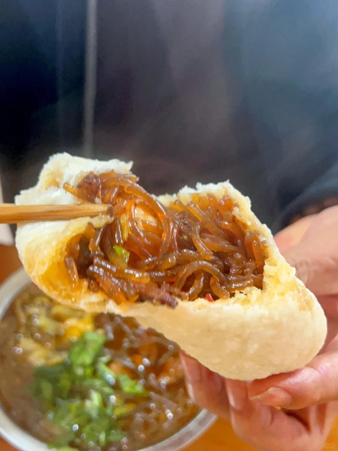 早上来俩软乎乎的大包子,再配上一碗Q弹咸香的粉条汤,简直太满足啦~