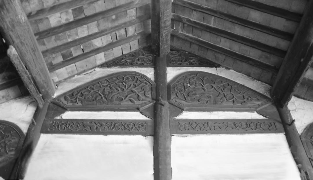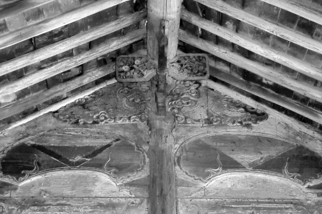 图56 杜行赵氏老屋正梁中间部位装饰有五联方胜图案(左侧有官帽翅)