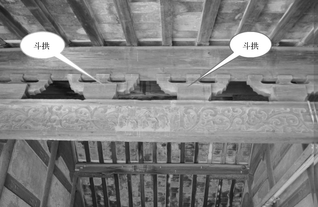 图63 墙门间梁木和看枋之间用斗拱联结图