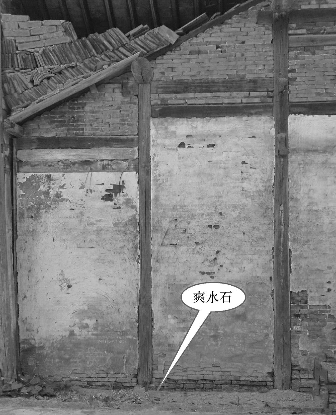 爽水石的专业名称为柱础或柱础石,是承受房屋压力的垫基石,不可或缺。它由一块半圆形石头和一块平面石板组成。(图75)具体用法是,将石板放在地面上,上面再安放半圆形石头,柱子立在这块石头上,这样就使柱脚与地面隔离,起到绝对的防潮作用。半圆形石头下面垫放一块平板石头,涉及压力和压强的关系问题,使接触地面的面积增加,压强就小,最大作用是可加强柱基的承压力。也就是说,凡房子有柱子的,柱子下面必有爽水石和平面石板。“爽水石”的名称告诉我们,这样做,一是要让雨水很快地流走(房子周围一圈是外露的柱子),是为保护柱子少受侵蚀,二是减少地面湿气对柱子下部的腐蚀影响。