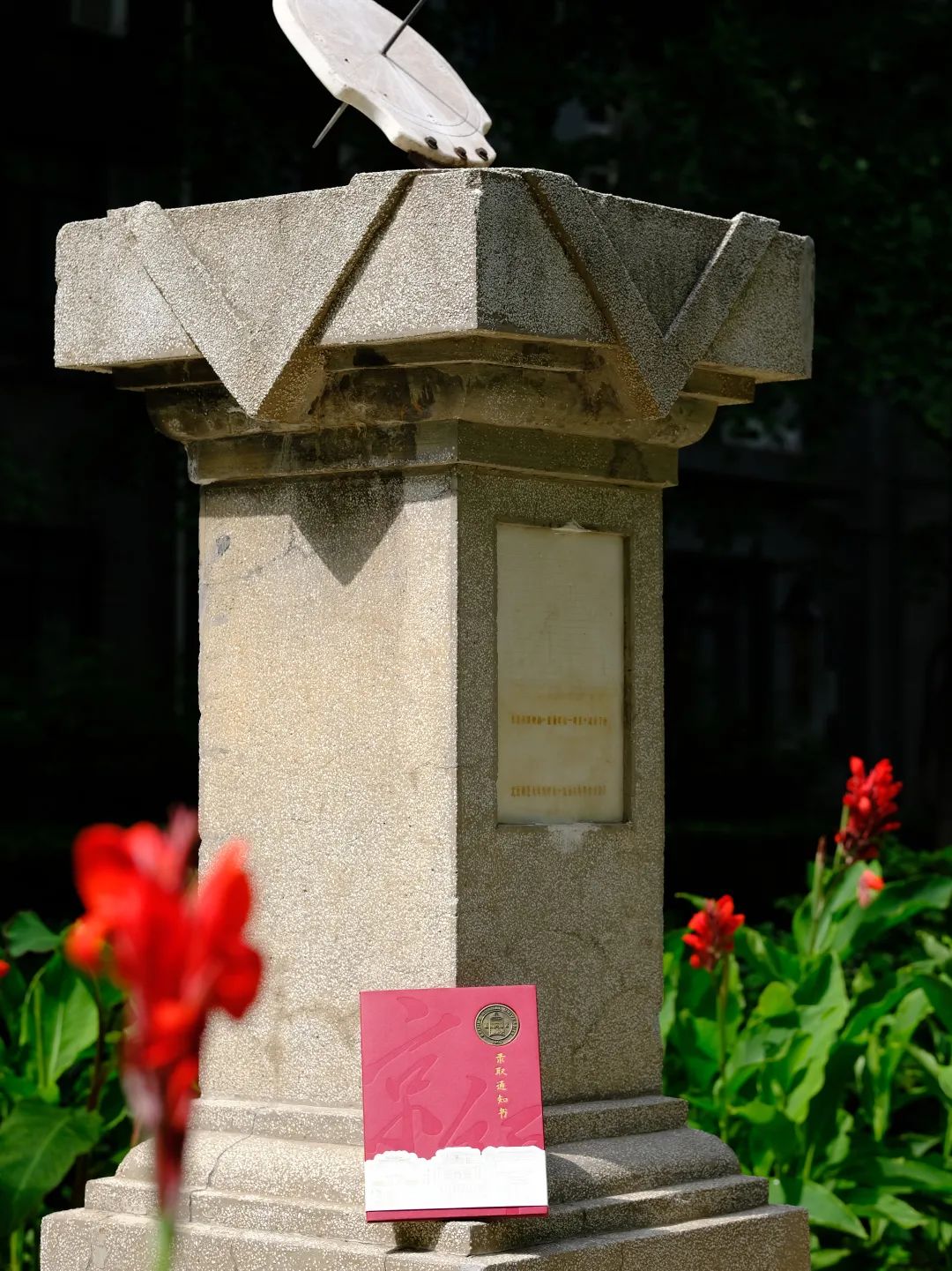 铜色校徽与立体木铎交相辉映
