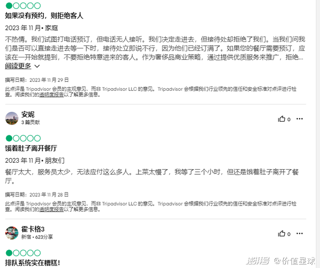 如果服务品质“缩水”,那么海底捞赖以成名的“绝活儿”就显得没那么厉害了。Trip Advisor平台上,不少用户吐槽海底捞新加坡克拉码头店服务员少、排队系统糟糕、无法预订等问题。