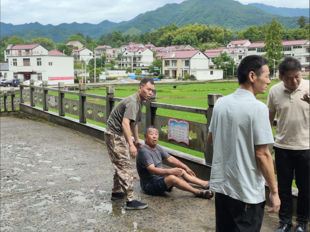 6月24日一早,云乐镇政府主要负责人在防汛日常巡查中,发现一名老人摔倒在地。大家立即上前,检查老人伤势。