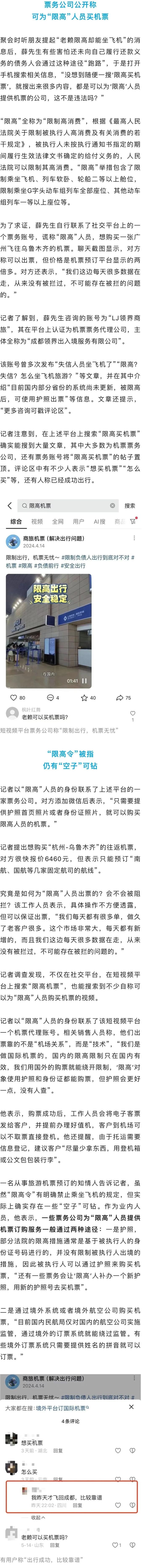 原标题:《“限高”人员还能乘飞机?多平台被指钻空子》