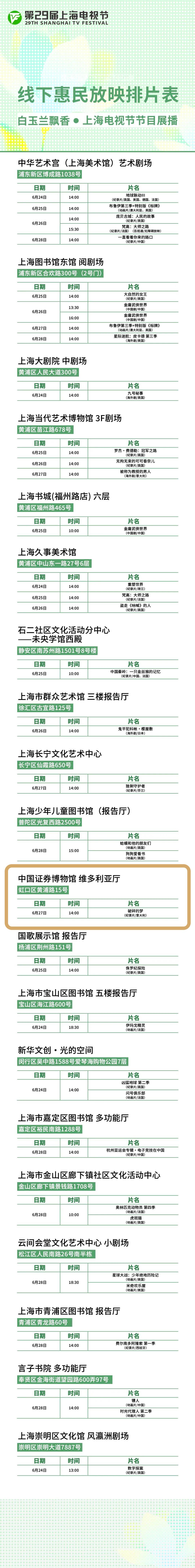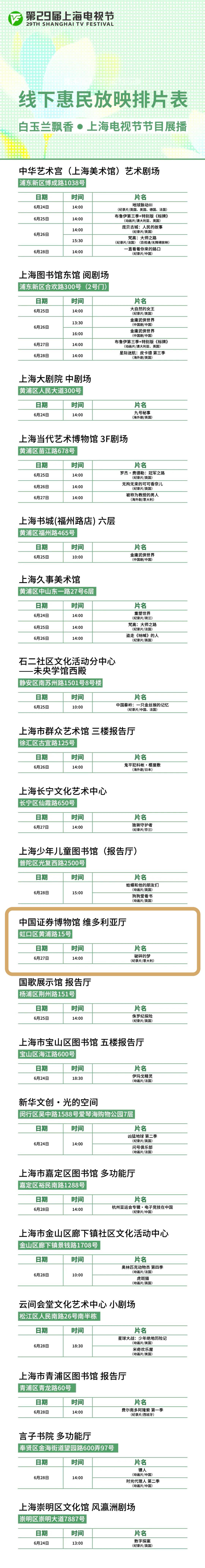 上海电视节节目展播的线下惠民放映导赏活动