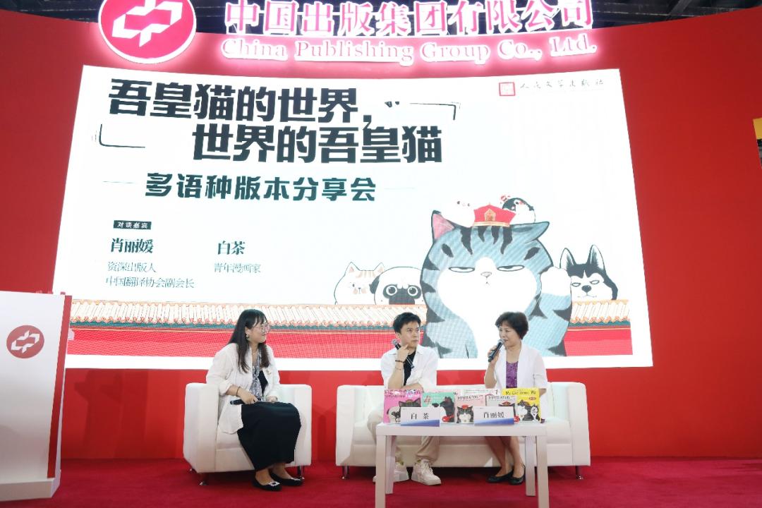 6月22日下午,“吾皇猫的世界,世界的吾皇猫——国漫吾皇猫多语种版本分享会”在北京国际书展中国出版集团活动区举行。人民文学出版社总编辑李红强、黎巴嫩数字未来出版公司董事长穆罕默德·哈提卜出席活动并致辞,人文社总经理吴良柱出席活动。《喜干》策划人、中国翻译协会副会长、人文社原副总编辑肖丽媛和吾皇猫的作者、青年漫画家白茶现场对谈,畅聊合作历程、漫画多语种版本的传播及影响等。活动现场满是《喜干》的忠实读者,在书展上掀起一波热潮。