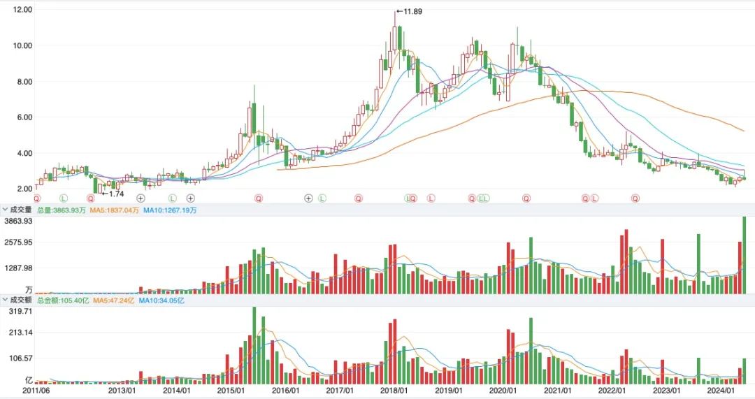 自2010年登陆A股后,永辉超市股价曾持续上涨,2018年达到每股11.72元的高点,总市值一度高达1064亿元,被外界叫做“超市之王”。张轩松也多次成为福建闽侯首富,哪怕持续战略收缩的2023年也不例外。