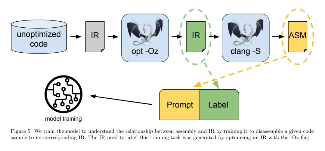 数据集。他们从之前任务中使用的数据集中派生出汇编代码和 IR 对。他们的微调数据集包含 470 万个样本,输入 IR 在降低到 x86 汇编之前已经使用 - Oz 进行了优化。
