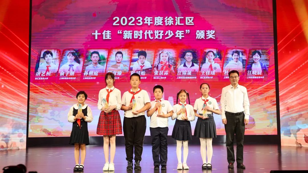 徐汇区委常委、宣传部部长赵懿,副区长王志华出席活动,为十佳“新时代好少年”和“新时代好少年”团队颁发奖杯和荣誉证书,向获评2023年度徐汇区“新时代好少年”荣誉称号的全体同学表示祝贺。心中有光,脚下有力