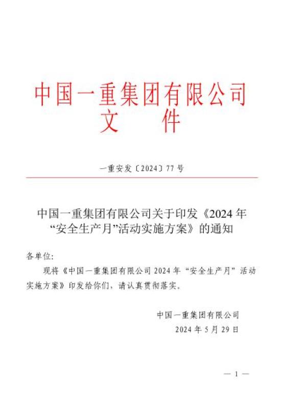 原标题:《安全生产月 || 中国一重各单位多措并举,扎实开展“安全生产月”活动》