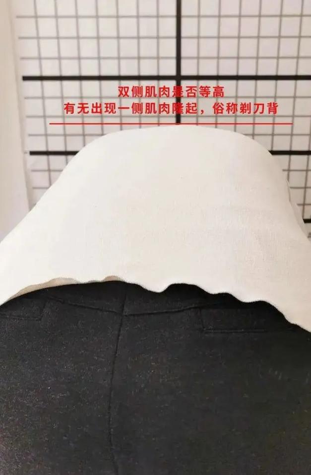 肩胛骨:肩胛骨是一个倒三角形状,家长观察肩胛骨上缘和下缘的骨头突起是否一致。特别注意,所谓的一致,除了高低,还有内外和翻起是否一致。