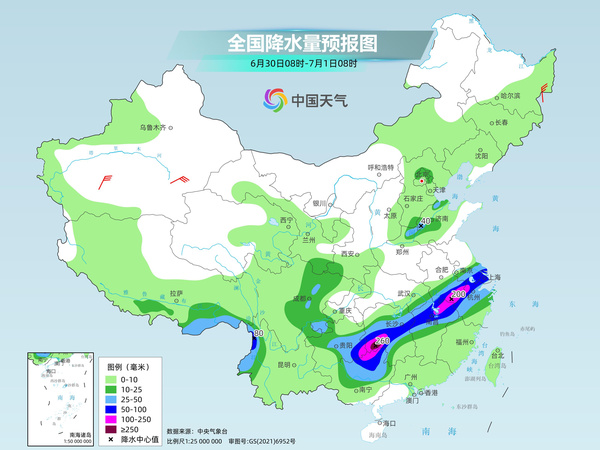 未来三天(6月30日至7月2日),广西北部、贵州至长江中下游地区将有持续强降雨天气,雨带稳定少动,部分地区有大暴雨,局地特大暴雨,需注意防范次生灾害的发生。7月3日以后,长江中下游地区等地强降雨过程有望结束。气温方面,明天起,华北和新疆等地高温将减少,江南南部和华南闷热天气持续。7月3日以后,长江中下游地区高温闷热模式开启,需注意防暑。