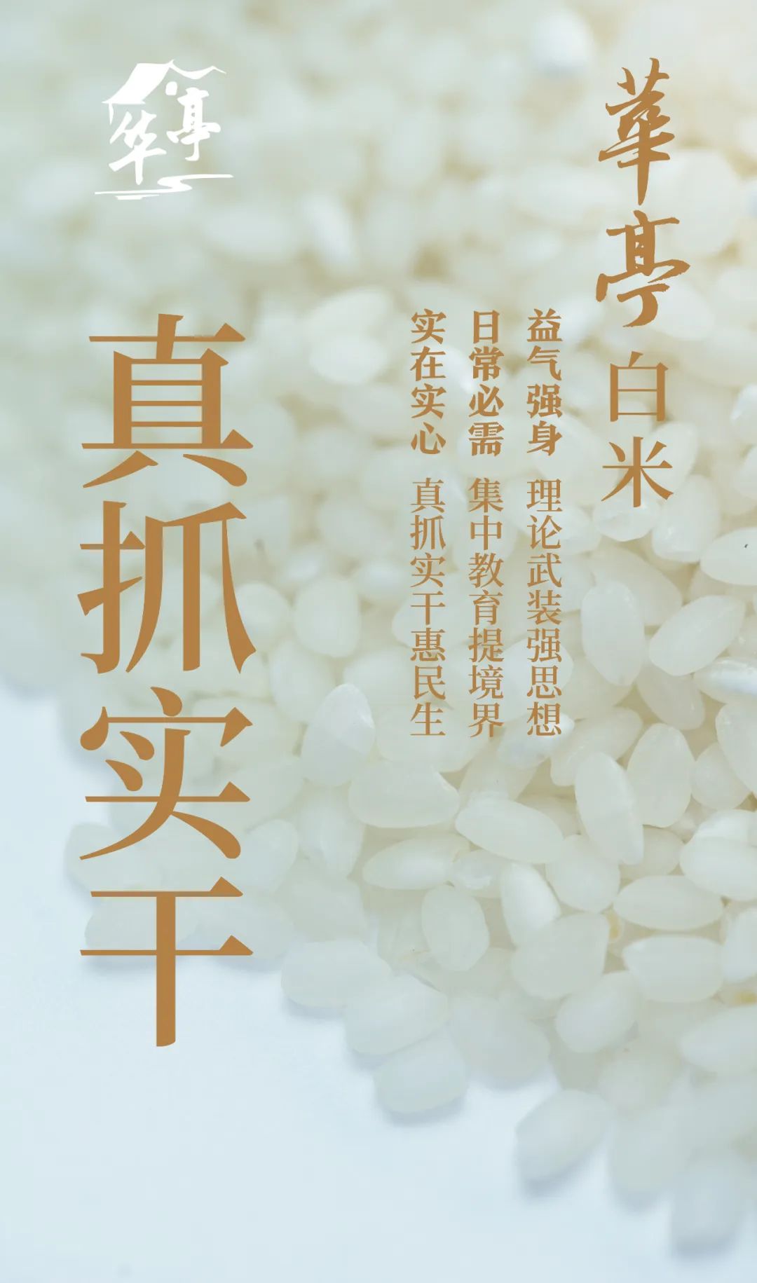 白米颜色纯洁白净象征着为人、当官清清白白,其向下扎根、向上生长、实在实心的特性又象征着党员干部深耕基层一线、真抓实干践行初心使命的行动自觉。