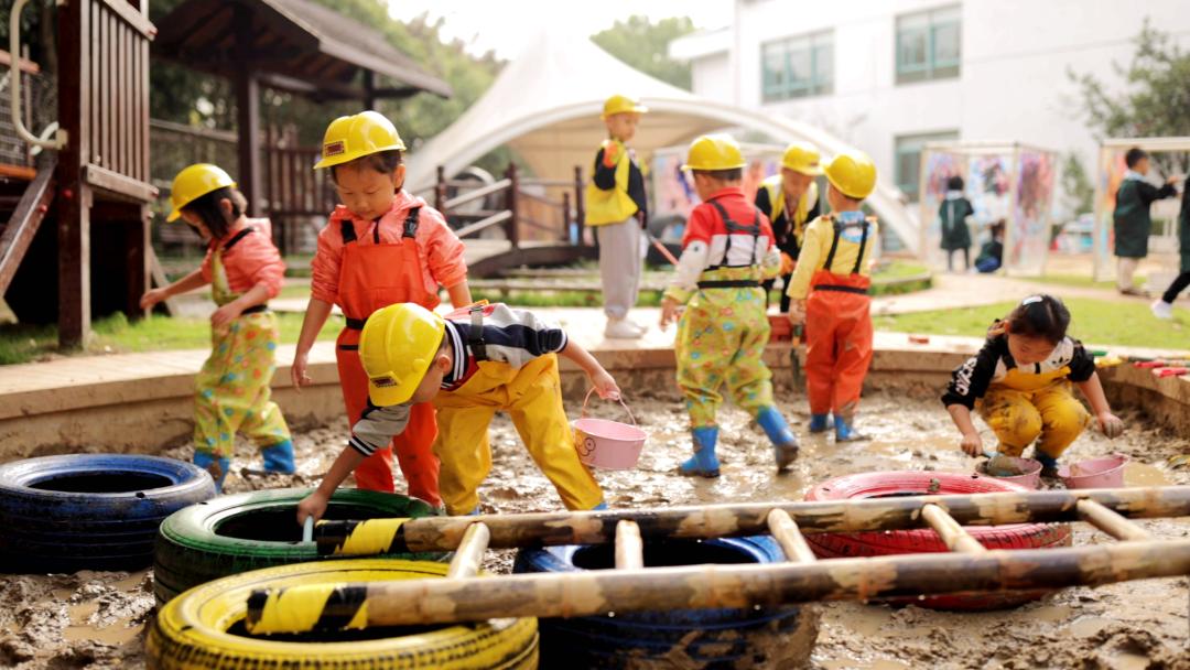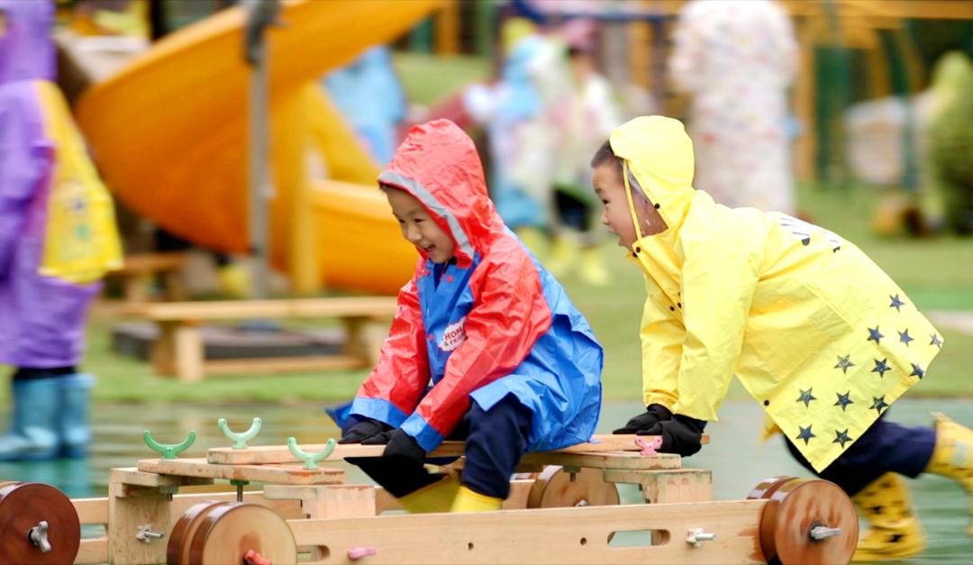 山坡、隧道、菜园、果园、泥坑、沙地,全园户外场地360度“无死角”利用,在不被定义的场域中打开了无限可能,带给幼儿各种户外活动的丰富体验。孩子们在户外游戏、学习、探索,雨天里也抵挡不住户外活动的热情,实实在在将每天2小时户外活动时间高质量利用。