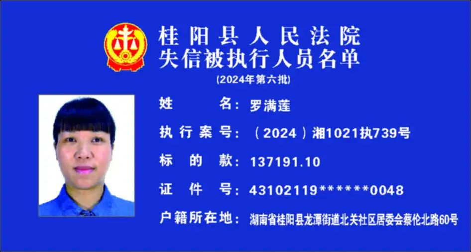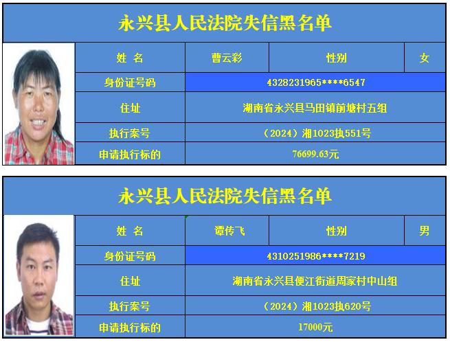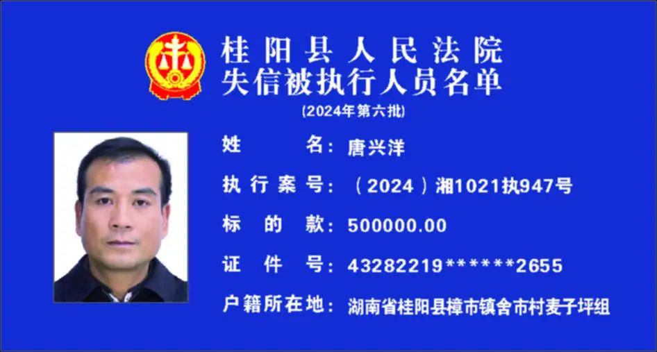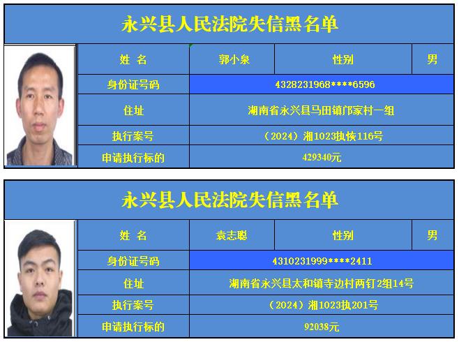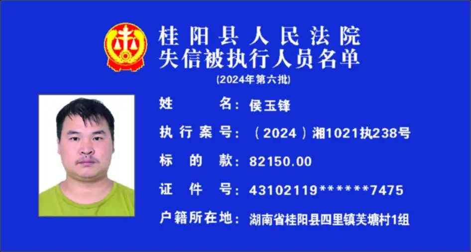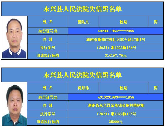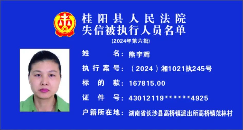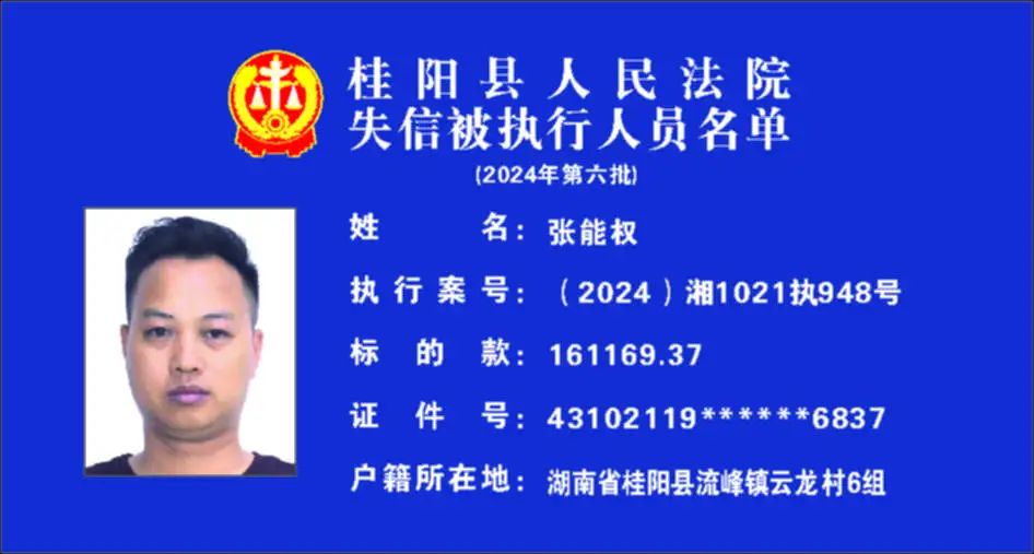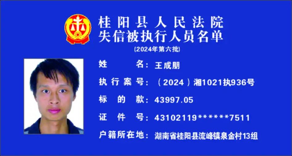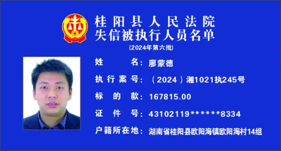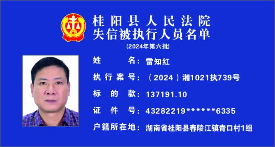 原标题:《郴州法院2024年第六批失信人名单曝光!》