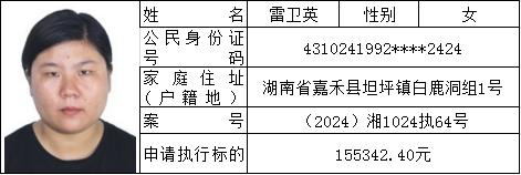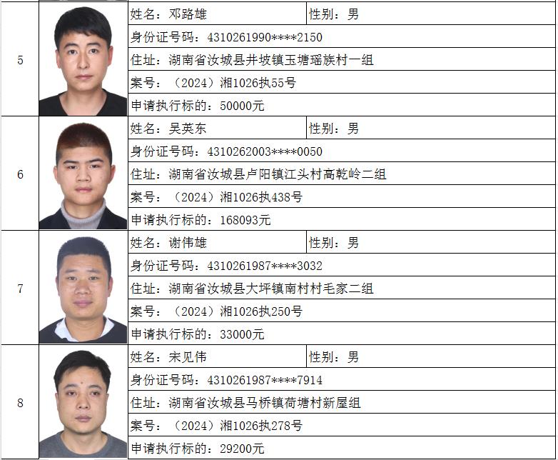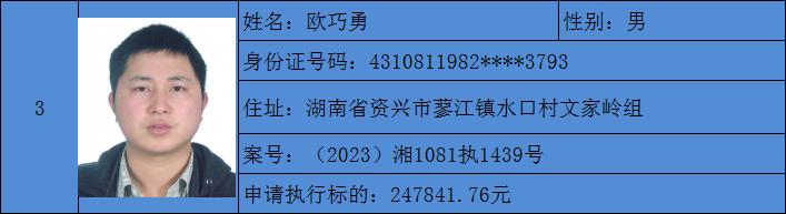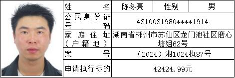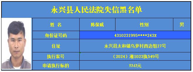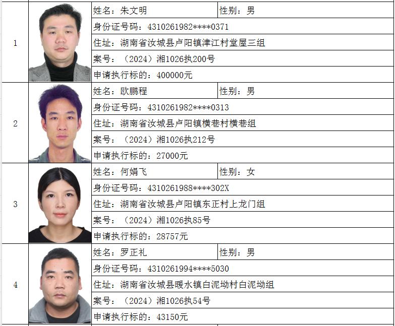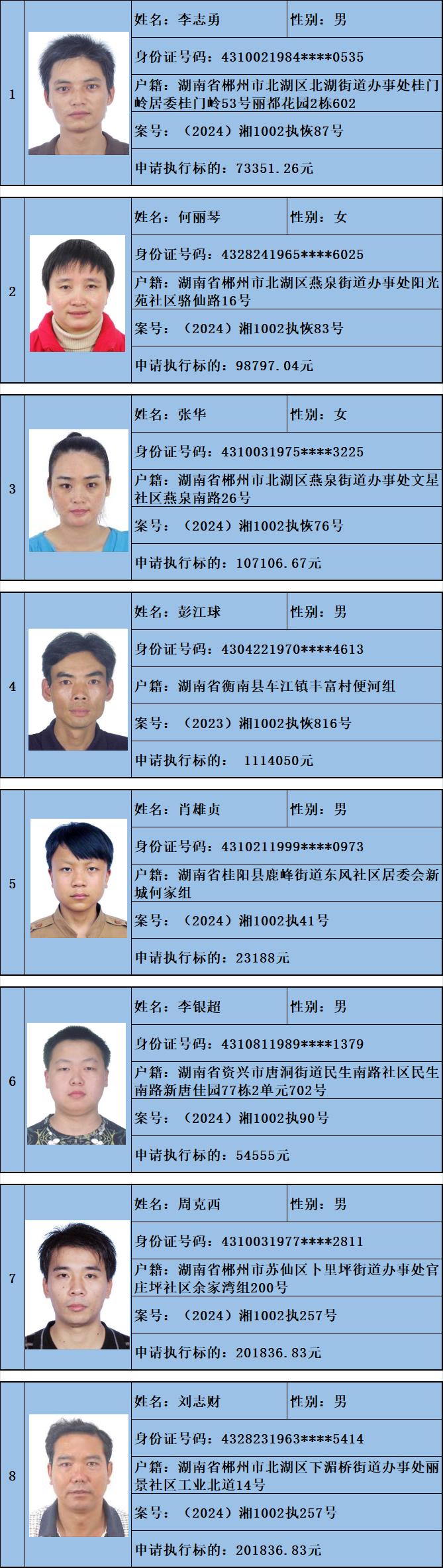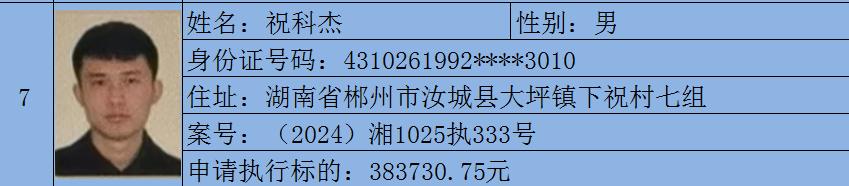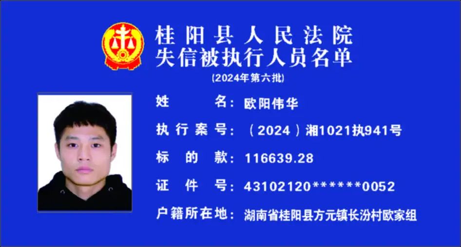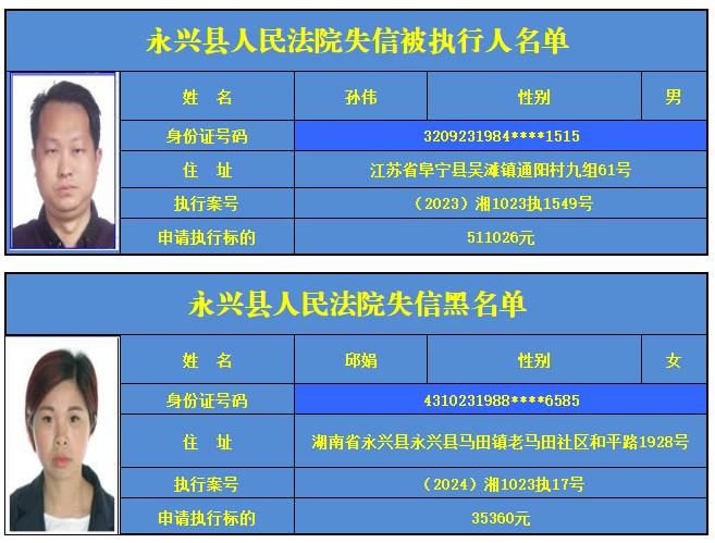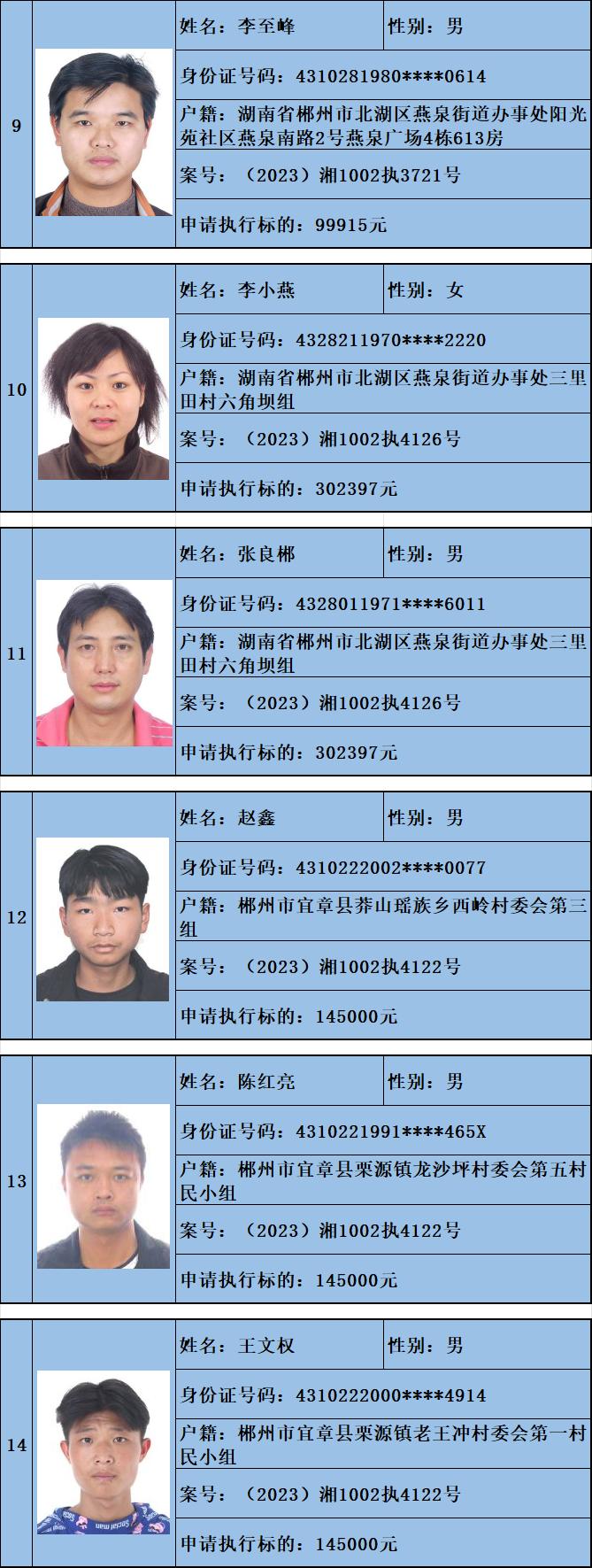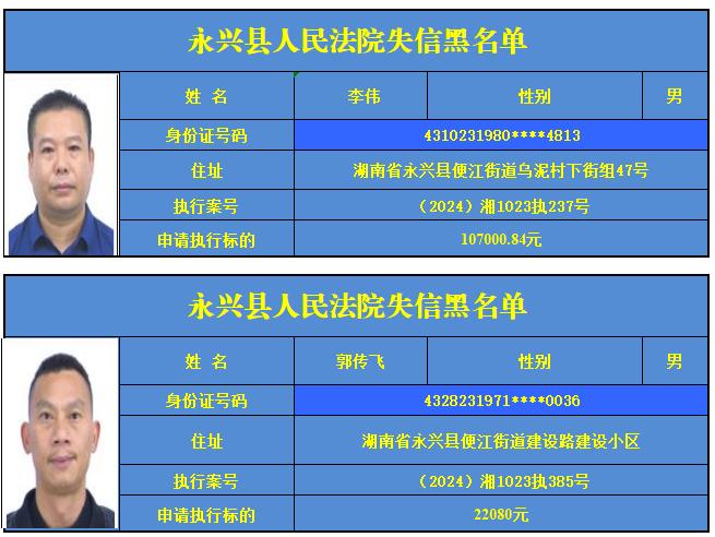 原标题:《郴州法院2024年第六批失信人名单曝光!》