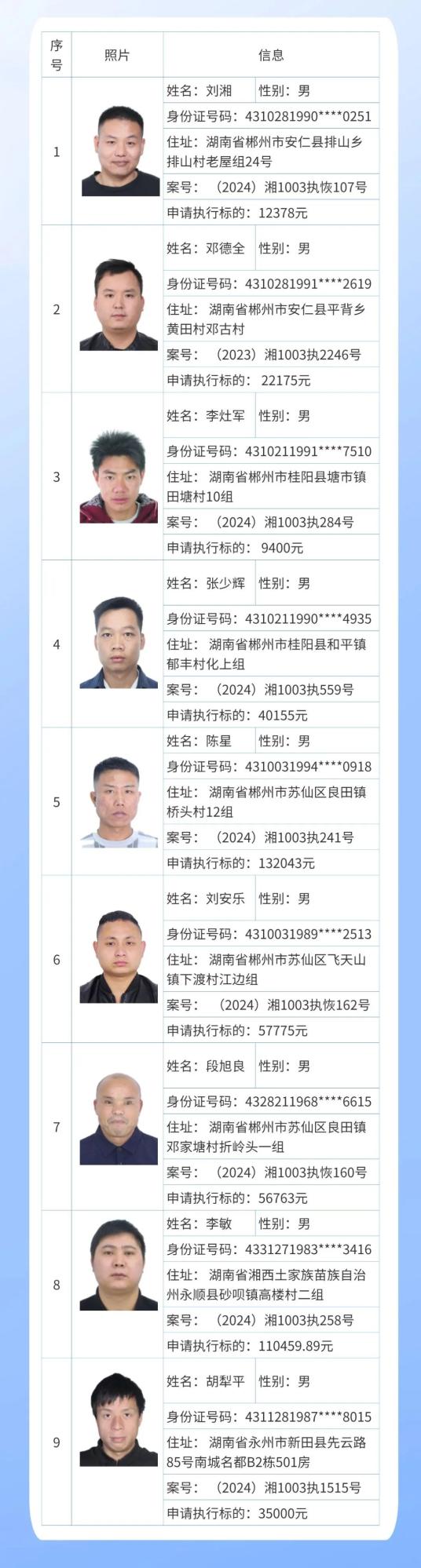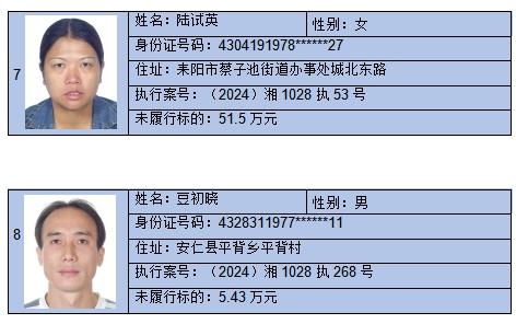 郴州法院2024年第六批失信人名单曝光!