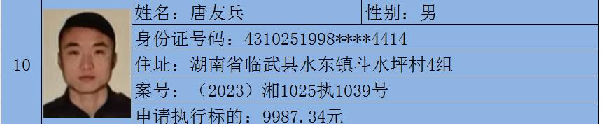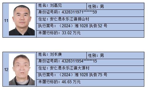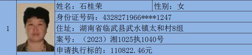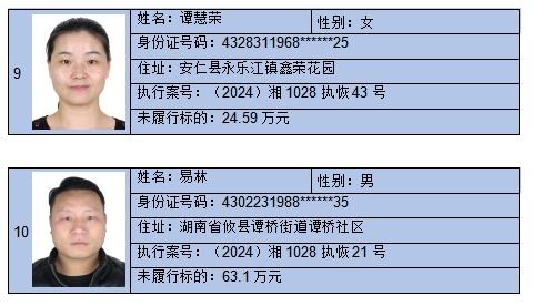 监督举报电话:0735-5232629名单来源于各县(市、区)人民法院