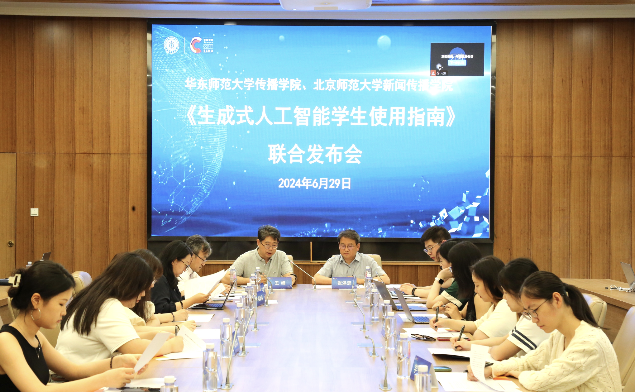 2024年6月29日,华东师范大学传播学院与北京师范大学新闻传播学院共同在华东师范大学举办了《生成式人工智能学生使用指南》发布会。这一指南由两校新闻传播学院的人工智能专家团队联袂打造,标志着国内高等教育界首次就生成式人工智能(AIGC)技术在教育和学术研究中的规范使用提供官方指导。