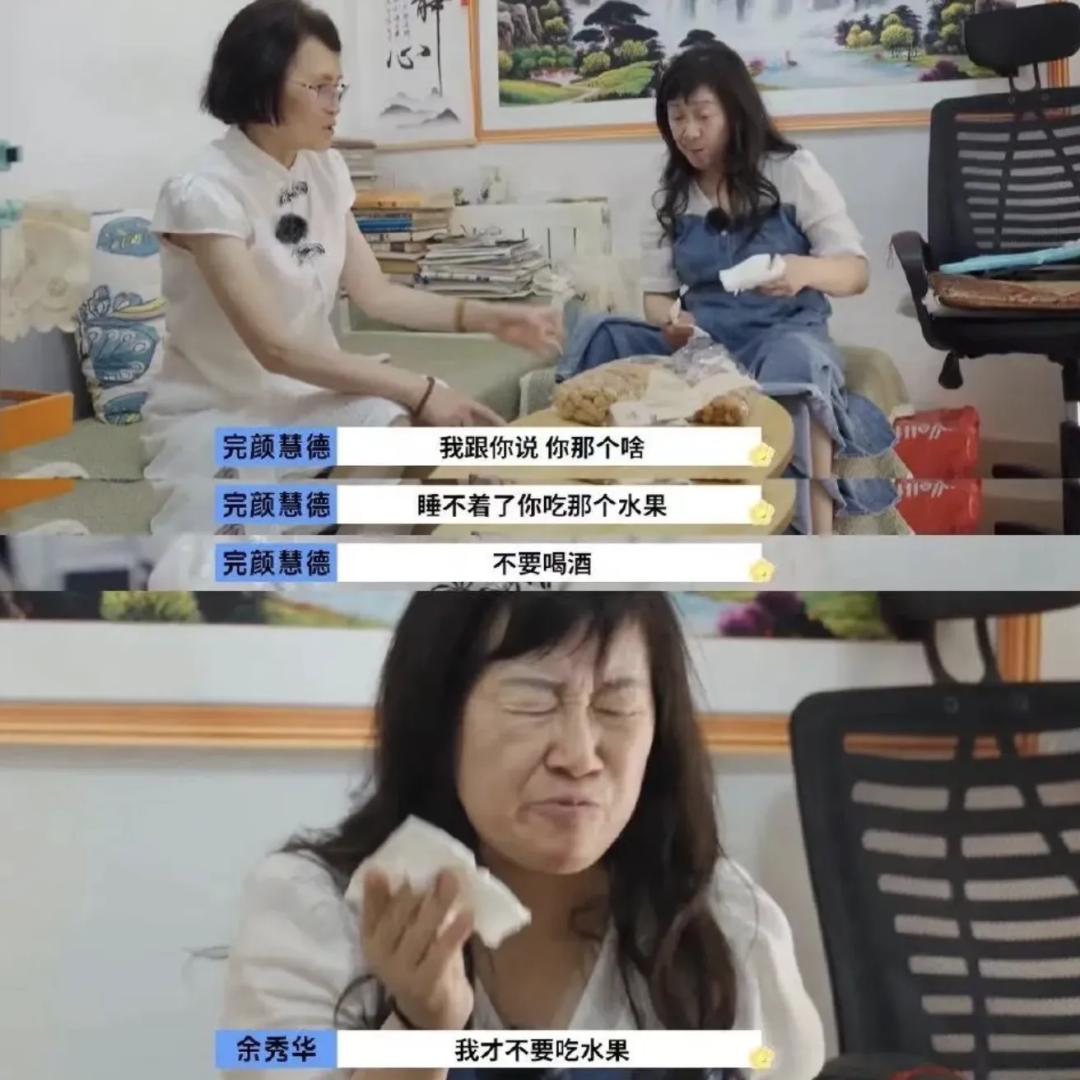 余秀华说不喝酒睡不着,完颜慧德说喝酒对身体不好,睡不着就吃水果。
