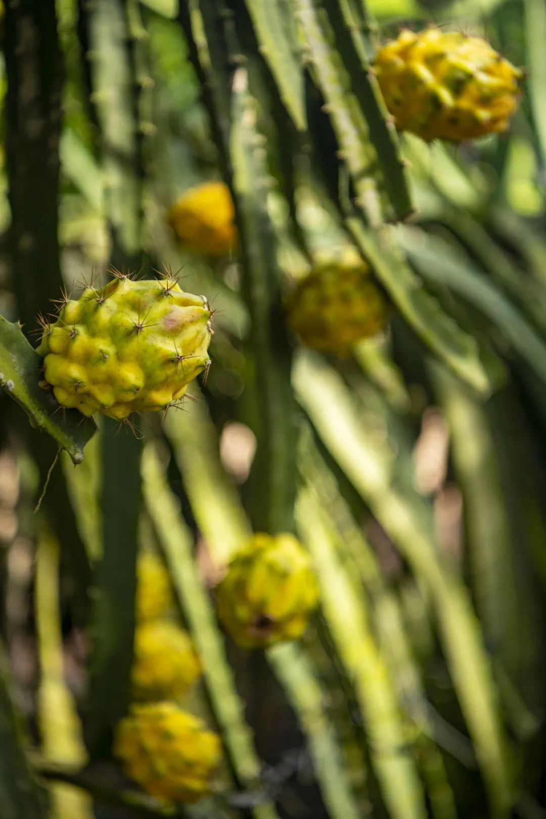 原产非洲沙漠的刺角瓜,也叫火参果,长得像黄金狼牙棒。刺角瓜果瓤很酸,常见吃法是在果实上端开个口,往里面倒蜂蜜,再戳一根吸管,把果肉搅开吸着喝。三亚市面上有一种长得像微型火龙果的水果,吃起来却像桑葚,能把手指和舌头都染成紫色,叫做仙人掌果,因为它们是同属仙人掌科的“近亲”。