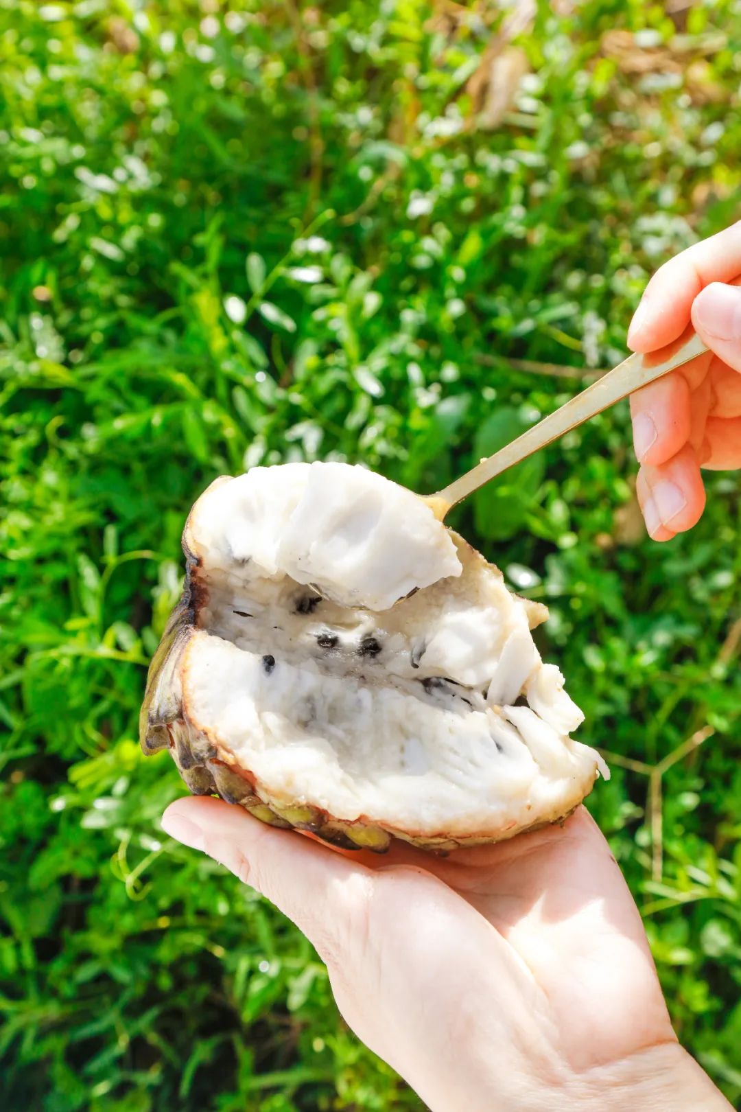 原产美洲大陆、印度群岛和加勒比海岛的释迦,长得有点像佛头,因此得名。它有“水果中的冰淇淋”称号,成熟后会散发出一股奇特的香味,一口咬下去绵密甜蜜。释迦是世界上甜度最高的水果之一,除了市面上常见的黄绿色释迦,三亚今年又引进了紫色释迦,“佛头”又染了新颜色。