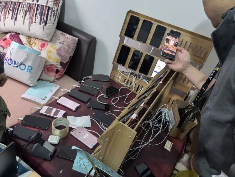 在掌握充分证据后,办案民警先后在外省、上海市将犯罪嫌疑人管某、姜某抓获,并在管某暂住地现场查获35部用于刷单的手机。