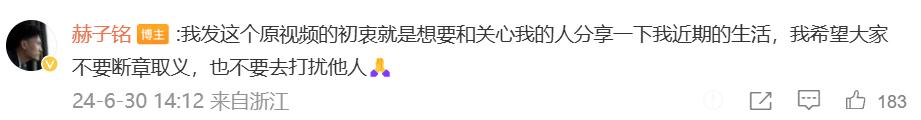 他在评论区写道:“我发这个原视频的初衷就是想要和关心我的人分享一下我近期的生活,我希望大家不要断章取义,也不要去打扰他人。”