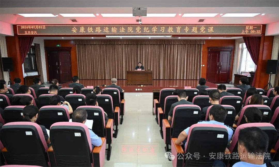 为深入开展党纪学习教育,增强全院干警遵规守纪的思想行动自觉,持续推动从严治党、从严治院向纵深发展,“七一”活动伊始,安铁法院党组书记孙毅以《讲政治 守规矩 强作风 以党纪学习教育推进安铁法院高质量发展》为题讲授专题党课,从“讲政治,以高度的政治自觉推动党纪学习教育走深走实”、“守规矩,以高度的思想自觉推动学习成果转化取得实绩实效”、“强作风,以高度的行动自觉推动安铁法院高质量发展行稳致远”三个方面进行了深刻阐述和讲解。
