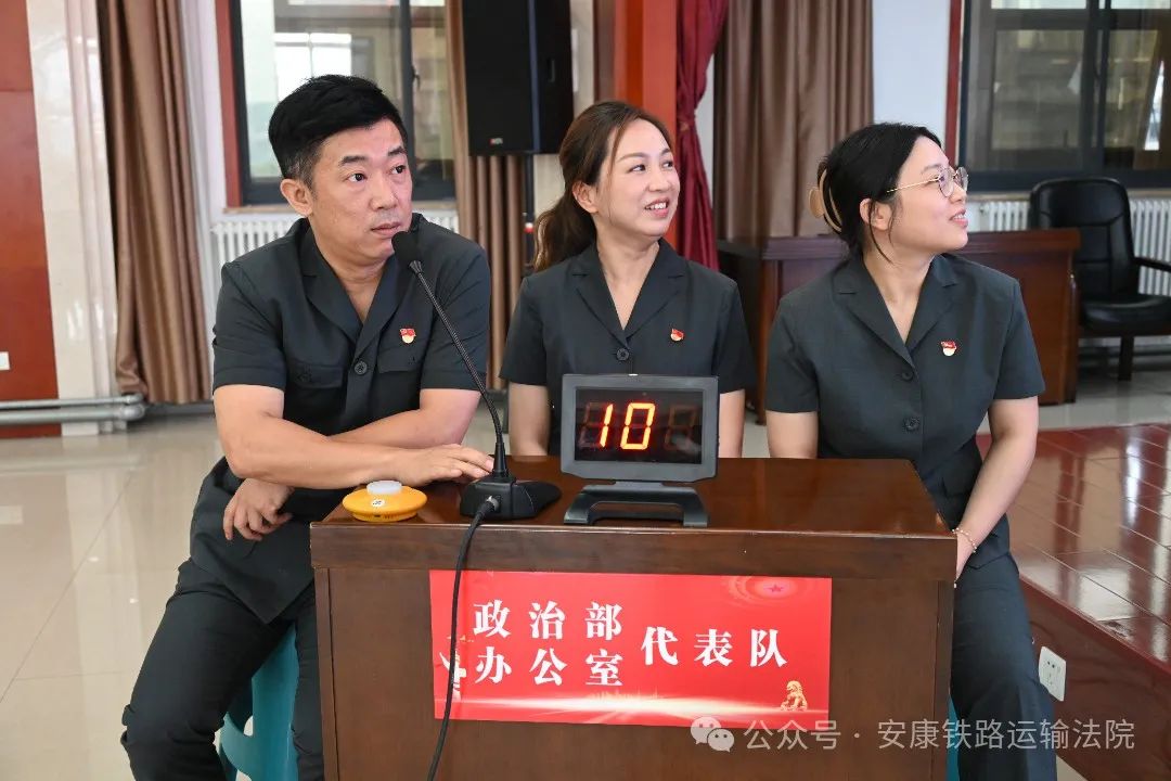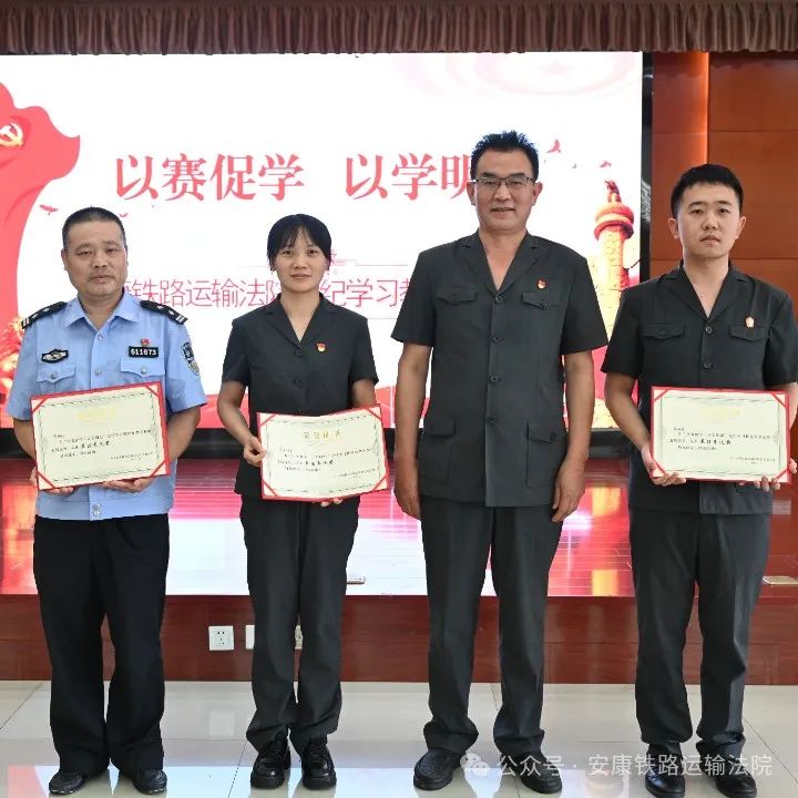 比赛中,参赛人员信心满满,争相抢答,充分展现了安铁法院干警积极向上的精神风貌和比学赶超的劲头。经必答题、抢答题、风险题等环节的激烈角逐后,政治部办公室联合代表队、执行局审管办联合代表队、司法警察大队代表队脱颖而出,分别斩获竞赛一、二、三等奖,立案庭代表队、环资庭代表队、综合庭行政庭联合代表队荣获优秀奖,执行局法官助理陈明哲、环资庭法官助理宋红娟、司法警察大队司法警察高明站三名同志表现优异,荣获最佳表现奖。院领导分别为获胜代表队和优秀选手颁奖。