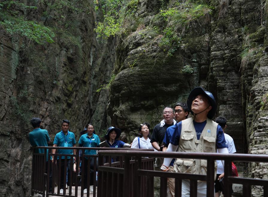 30日,联合国教科文组织专家来到我县,走进龙潭峡景区游客服务中心、农家宾馆、停车场、研学产业、露营地等处,详细了解公园管理结构、基础设施建设、地质遗迹保护、科研科普活动、带动地方经济可持续发展等情况。自2006年由联合国教科文组织批准以来,王屋山——黛眉山世界地质公园的核心景区之一“龙潭大峡谷”,凭借其独特的地质遗迹和丰富的自然景观,吸引了全球地质爱好者和游客的目光。上次评估后,龙潭峡景区紧紧围绕园区建设、地质遗迹保护及促进地方经济社会发展等方面做了大量工作,取得了一定成绩。