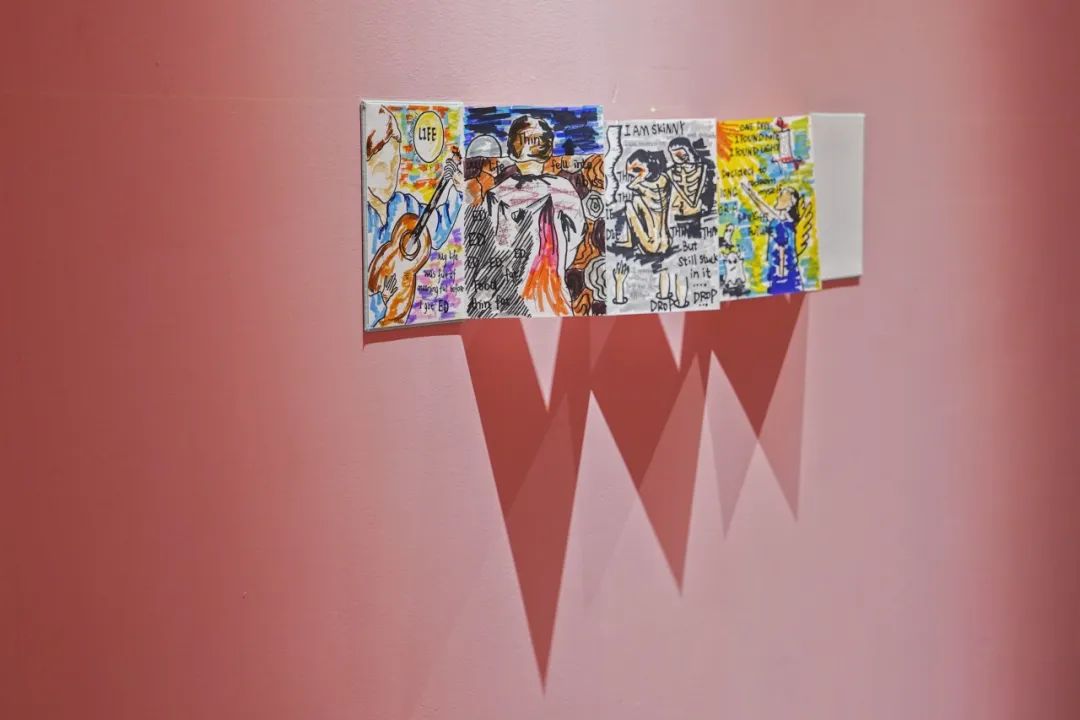 此次展品来源有两大部分,一部分为SMHC进食障碍诊治中心住院患者的艺术治疗作品以及家属作品,另一部分为向社会征集的曾经或现在正遭受进食障碍相关问题困扰的艺术家作品。