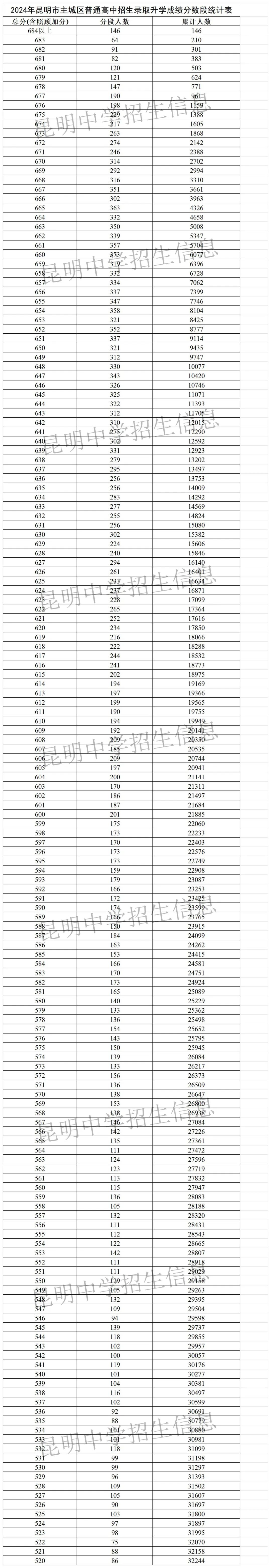 原标题:《2024年昆明市主城区普通高中录取最低控制线、分数段公布》