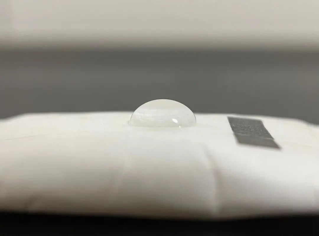 小包的干燥剂也经常装在杜邦纸包装里。在表面滴水,可以看到包装不会被浸湿 | 作者拍摄除了杜邦纸,一些吸湿包还添加了额外的防渗漏保险:“锁水剂”。白色粉末状的“锁水剂”会把袋内的溶液变成凝胶,即使包装破损也不必担心漏液。