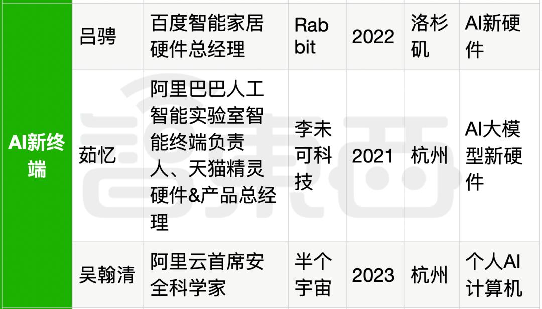 ▲原阿里巴巴集团副总裁、阿里云中国区总裁黄海清如下图所示,至少已经有6位来自阿里的高管投身了生成式AI创业。