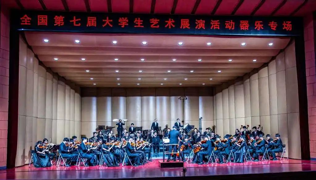 6月13日晚7点,襄阳剧院,西电大学生交响乐团率先登场,以著名作曲家赵季平先生授权演奏的交响序曲《红星照耀中国》拉开了本届全国大艺展器乐组展演的序幕,65名西电学子用饱满的情感与娴熟的技巧诠释着乐曲中的每一个音符,收获了现场千名观众与专家对这支理工科高校学生乐团如雷般的掌声与喝彩声。作为西北地区高校中唯一三次站在全国展演舞台的高校,乐团此次的表现显得更加的沉稳和成熟,红色血脉与红色作品的完美诠释让同学们充满了自信。