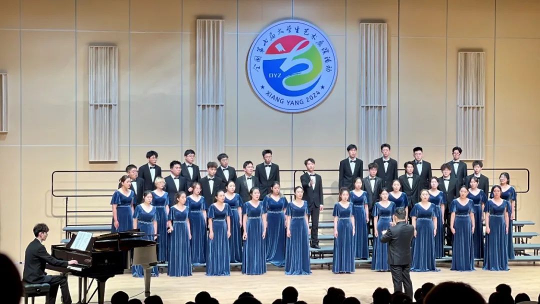 此次大艺展,西电大学生合唱团成为陕西高校唯一入选国赛展演并斩获一等奖的团队,实现了合唱团全国大艺展的“两连冠”。6月13日晚,襄阳市图书馆音乐厅,40名同学浓情演绎了陕西风情原创民族叙事合唱《信天游》。《信天游》是校团委委约青年作曲家汪磊二度合作的又一现代民族合唱力作,是西电推动陕西原创合唱作品创作的又一高质量作品。这部作品在指挥、作曲、合唱团近百余次的反复打磨修改后才得以呈现,并首次引入“羊铃”这一艺术元素,演绎陕西黄土高原上的深情厚谊,清脆的羊铃声仿佛带观众置身于陕北的田间地头,感受那份淳朴的乡土情怀。