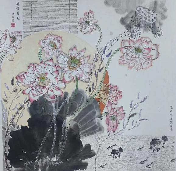 微电子学院2022级本科生杨碧葳同学创作的国画作品《荷塘月色》在本次大艺展省赛获得一等奖,在国赛中斩获二等奖,这是我校在绘画项目首次斩获国家级奖项。《荷塘月色》融合写意和工笔两种国画技法,以细腻的笔触和独特的视角,生动描绘了晴朗月光下荷塘的静谧与生机。