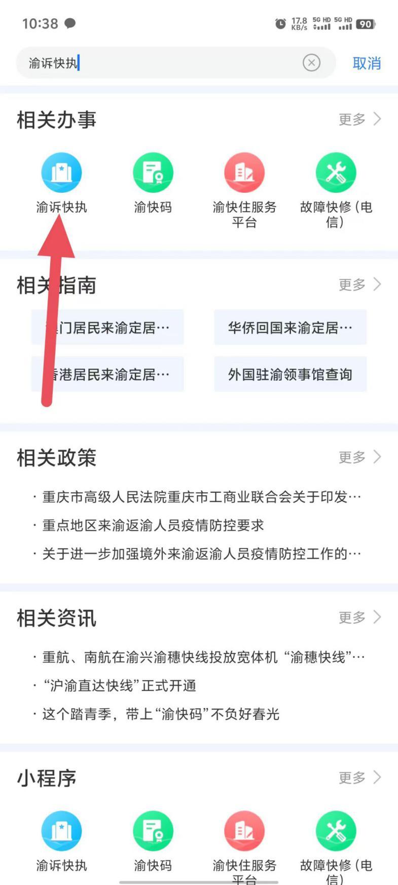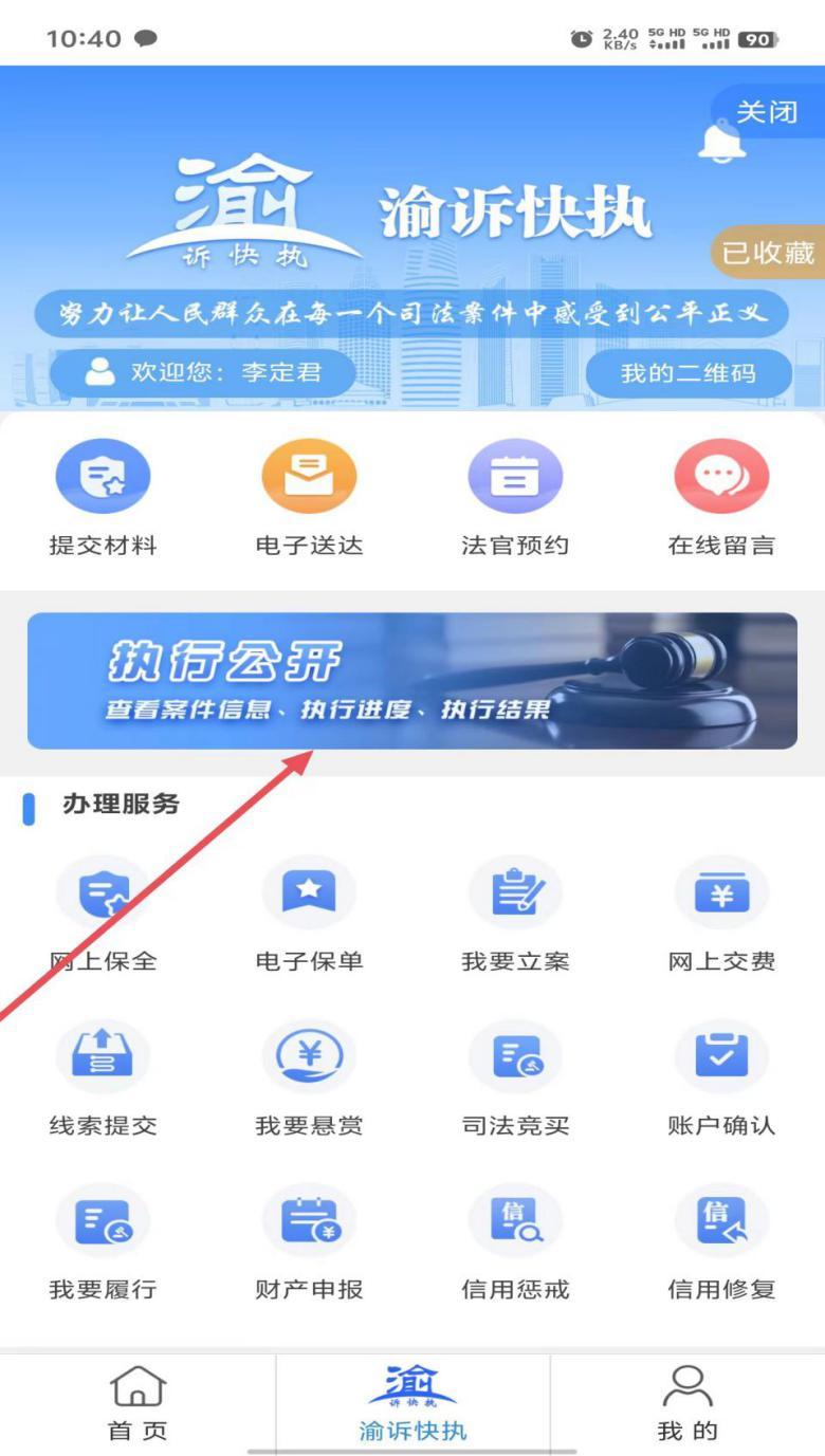 首页搜索“渝诉快执”。